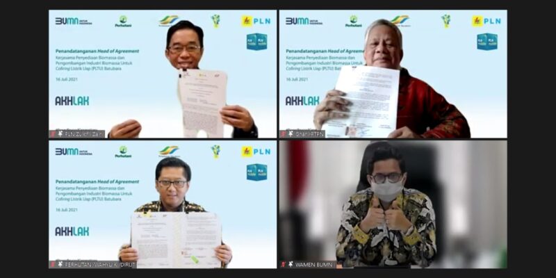 Turut menyaksikan secara daring adalah Wakil Menteri BUMN I Pahala Nugraha Mansury, Direktur Jenderal EBTKE Kementerian ESDM Dadan Kusdiana, dan Direktur Jenderal Ketenagalistrikan Kementerian ESDM Rida Mulyana. HoA ini akan ditindaklanjuti dengan pelaksanaan penyediaan dan pengembangan industri biomassa untuk co-firing PLTU.