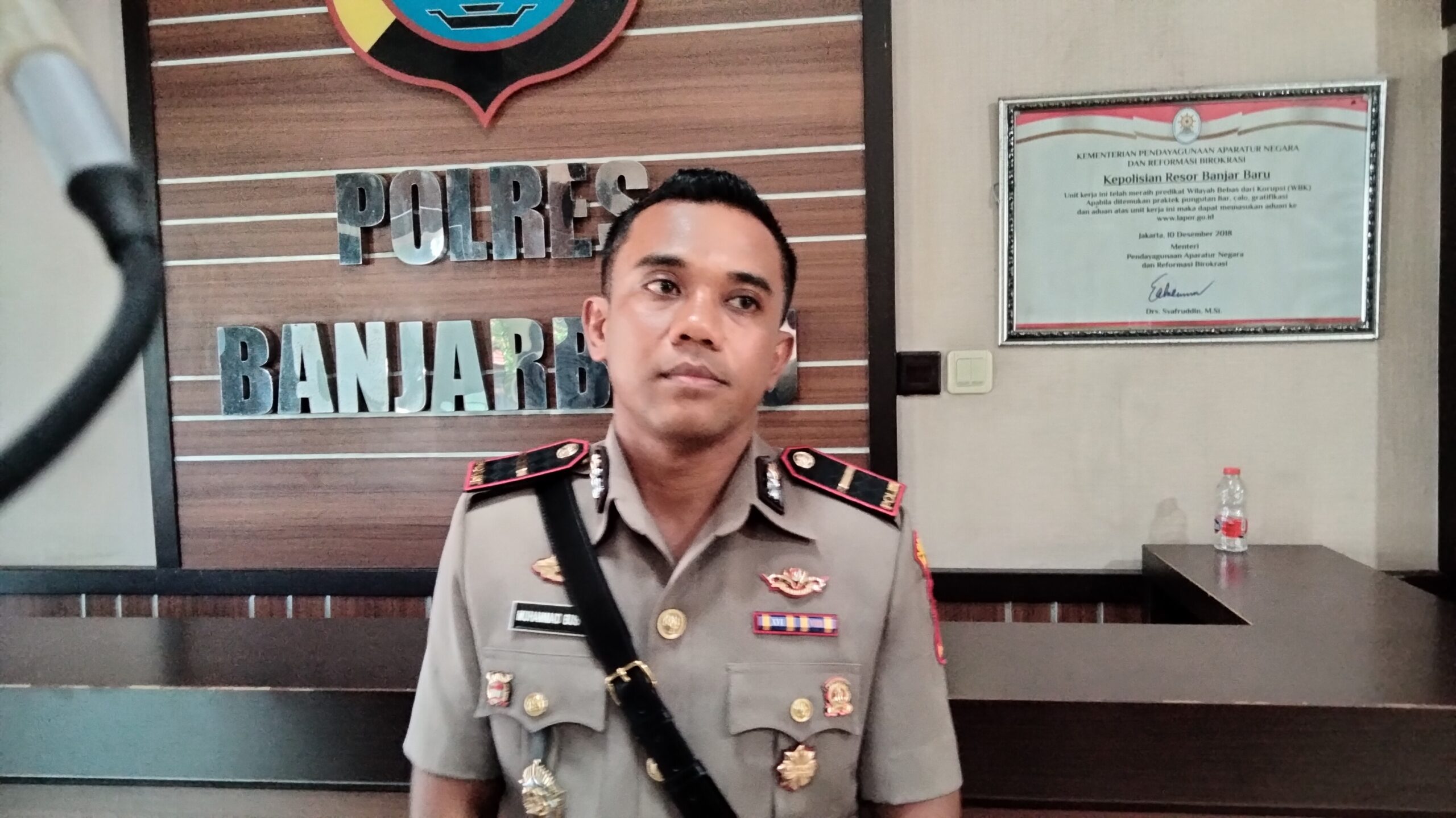 Kapolres Banjarbaru AKBP Pius X Febri Aceng Loda saat diwawancarai awak media (Foto : Azmi/R9