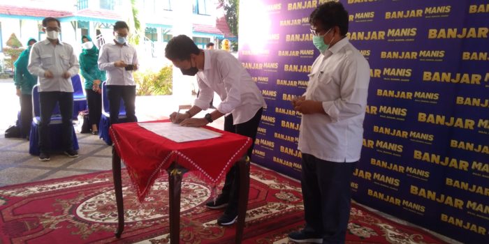 Penandatanganan perjanjian antara Bupati Banjar, Saidi Mansyur dan Dirjen Sumber Daya Air Kementrian PUPR yang diwakili Kepala Balai Wilayah Sungai Kalimantan III, Fikri Abdurrahman dilaksanakan di Mahligai Sultan Adam, Martapura.
