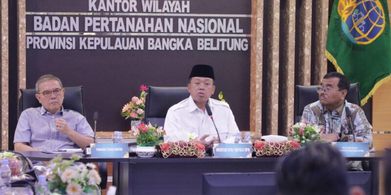 “Kita orang Kementerian ATR/BPN tugasnya memastikan bahwa tanah rakyat itu aman. Karena, kita masuk kategori land tenure, yang berarti legalisasi aset. Aset itu harus dilegalisasi dan itu tugas kita,” ujar Menteri Nusron di Ruang Rapat Kanwil BPN Provinsi Kepulauan Bangka Belitung.