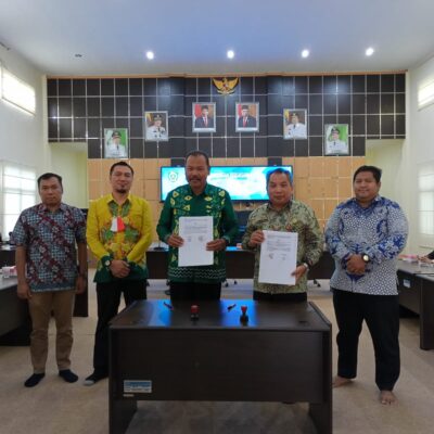 Kepala DPMPTSPTTK Balangan bersama Rektor ITS Mandiri melakukan penandatanganan perjanjian kerja sama tersebut di aula DPMPTSPTTK setempat, Kamis (07/07/2022).