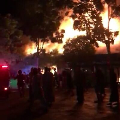 BANJARBARU, REPORTASE9.COM – Berkobar hebat api lahap bangunan sekolah SMP Negeri 3 Banjarbaru di Jalan Mistar Cokrokusumo, Kecamatan Cempaka. Kamis,(16/6/2022)malam.