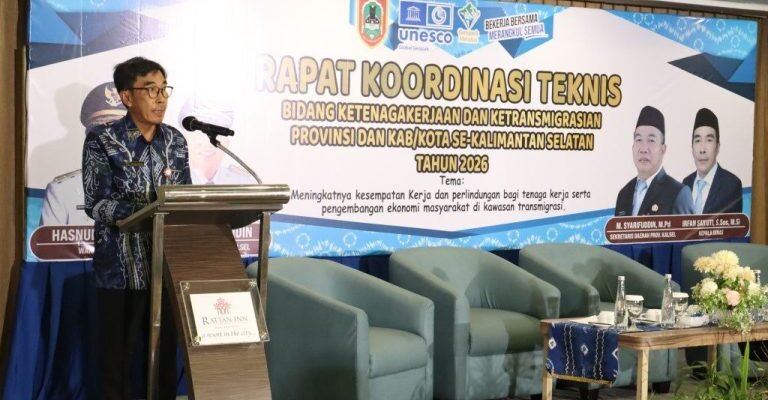 Hal tersebut disampaikan Kepala Disnakertrans Kalsel, Irfan Sayuti dalam Rapat Koordinasi Teknis (Rakornis) Bidang Ketenagakerjaan dan Ketransmigrasian Provinsi dan Kabupaten/Kota se-Kalsel Tahun 2026 di Banjarmasin pada Kamis (29/1/2026).