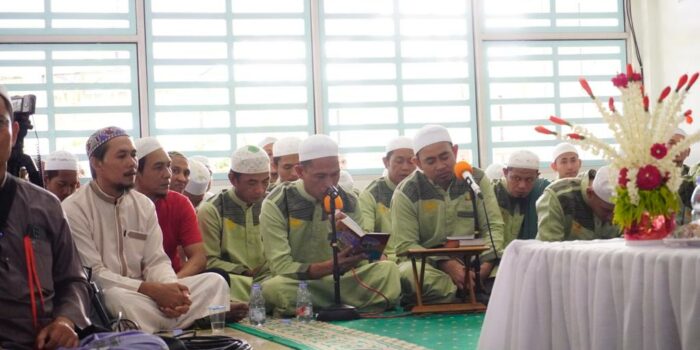“Terima kasih atas berkenannya Guru Udin hadir di tengah-tengah kita, meski lokasi kita sangat jauh, namun beliau dan rombongan tidak surut semangat untuk hadir berikan tausiah di Lapas Narkotika Karang Intan. Ini akan menjadi agenda rutin tahunan, untuk menghadirkan beliau memberi tausiah kepada kita semua,” ucap Kepala Lapas (Kalapas) Wahyu Susetyo dalam sepenggal sambutannya.
