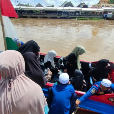 BANJAR, REPORTASE9.COM – Dalam Haul ke-218 Syekh Muhammad Arsyad Al-Banjari atau Datu Kelampayan di Masjid Jami Tuhfaturraghibin Kampung Dalam Pagar Ulu, Kecamatan Martapura Timur pada Senin (15/4/2024), Dinas Pemadam Kebakaran dan Penyelamatan (DPKP) Kabupaten Banjar turut berpartisipasi menyediakan penyeberangan gratis bagi para jemaah maupun tamu VIP yang ingin menuju lokasi acara haul menggunakan jalur air.