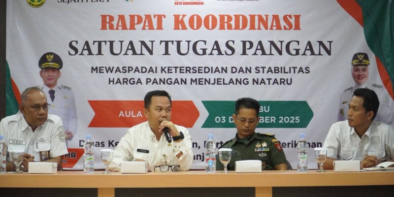 BANJARMASIN, REPORTASE9.ID – Sekretaris Daerah (Sekda) Kota Banjarmasin Ikhsan Budiman pimpin Rapat Koordinasi (Rakor) Satuan Tugas (Satgas) Pangan di Aula Dinas Ketahanan Pangan, Pertanian dan Perikanan (DKP3) Kota Banjarmasin pada Rabu (3/12/2025).