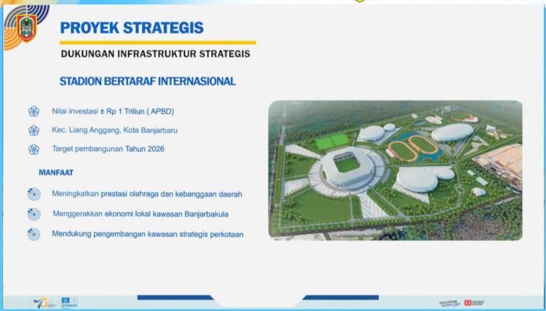 Di sektor olahraga, pembangunan stadion bertaraf internasional di kawasan Liang Anggang, Banjarbaru, juga masuk dalam agenda prioritas.