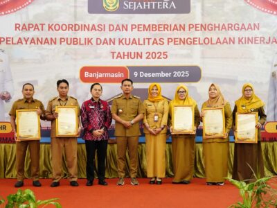 BANJARMASIN, REPORTASE9.ID – Wali Kota Banjarmasin M. Yamin HR serahkan penghargaan kepada SKPD berkinerja terbaik dalam kegiatan Rapat Koordinasi Pelayanan Publik dan Pengelolaan ...