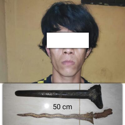 “Siap betul, malam tadi kami mengamankan seorang pemuda yang kedapatan membawa senjata tajam jenis pisau keris lengkap dengan gagangnya warna coklat panjang sekitar 50 cm tanpa disertai surat ijin yang sah, dan saat ini terlapor diamankan di Mako Polsek,” ucap Iptu Andre PW.