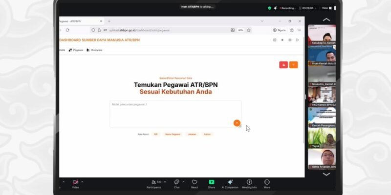 REPORTASE9.ID – Kementerian Agraria dan Tata Ruang/Badan Pertanahan Nasional (ATR/BPN) tengah mengembangkan aplikasi Dashboard Sumber Daya Manusia (SDM) guna mendukung proses mutasi dan promosi pegawai agar lebih efektif dan efisien. Aplikasi yang dibangun oleh Pusat Data dan Informasi Pertanahan dan Tata Ruang (Pusdatin) bersama Biro SDM ini disiapkan sebagai instrumen pemetaan kompetensi dan pengisian jabatan berbasis sistem merit.