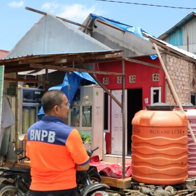 ” Yang paling diperlukan warga saat ini adalah terpal untuk warga yang rumahnya rusak parah” ungkap Hamdani.