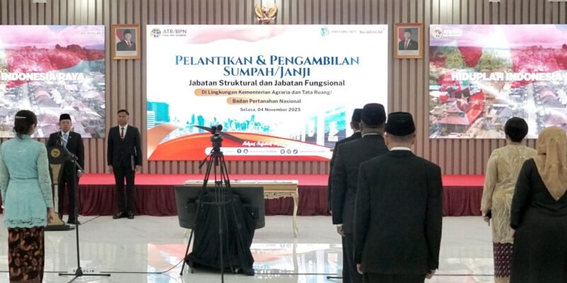 REPORTASE9.ID – Jabatan adalah amanah yang harus dijaga dan dimanfaatkan sebaik-baiknya untuk kepentingan masyarakat. Hal ini jadi pesan utama Menteri Agraria dan Tata Ruang/Kepala Badan Pertanahan Nasional (ATR/BPN), Nusron Wahid, saat melantik 840 Pejabat Struktural dan Fungsional di lingkungan Kementerian ATR/BPN pada Selasa (04/11/2025), di Aula Prona, Kementerian ATR/BPN, Jakarta.