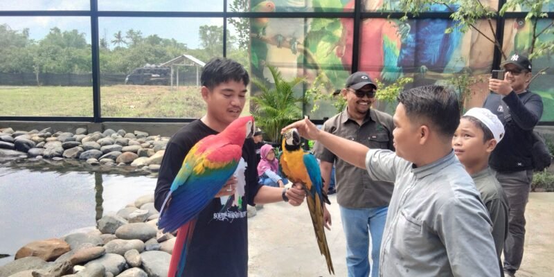 Suasana ketika pengunjung Aviary Amanah Borneo Park berinteraksi dengan burung (Foto : Azmi/R9)