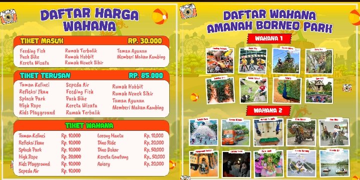 Pilihan Paket Wisata di Amanah Borneo Park bisa di cek di website ini : https://amanahborneopark.co.id/paket-wisata/