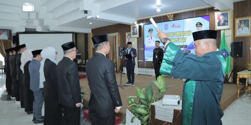 HSS, REPORTASE9.ID – Bupati Hulu Sungai Selatan (HSS) Syafrudin Noor kukuhkan dan ambil sumpah sembilan Pejabat Pimpinan Tinggi Pratama di lingkungan Pemerintah Kabupaten HSS pada Rabu (31/12/2025) yang dirangkai dengan penandatanganan pakta integritas sebagai wujud komitmen mewujudkan birokrasi yang bersih, profesional, dan berintegritas.
