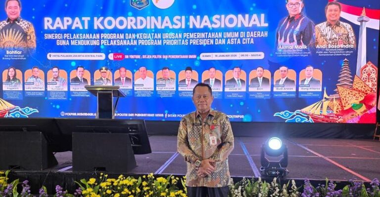 TANBU, REPORTASE9.ID – Bupati Tanah Bumbu (Tanbu) Andi Rudi Latif diwakili oleh Asisten Perekonomian dan Pembangunan, Eryanto Rais hadiri Rapat Koordinasi Nasional (Rakornas) Sinergi Pelaksanaan Program dan Kegiatan Urusan Pemerintahan Umum di Daerah, di Hotel Pullman Jakarta Barat pada Kamis (15/01/2026).