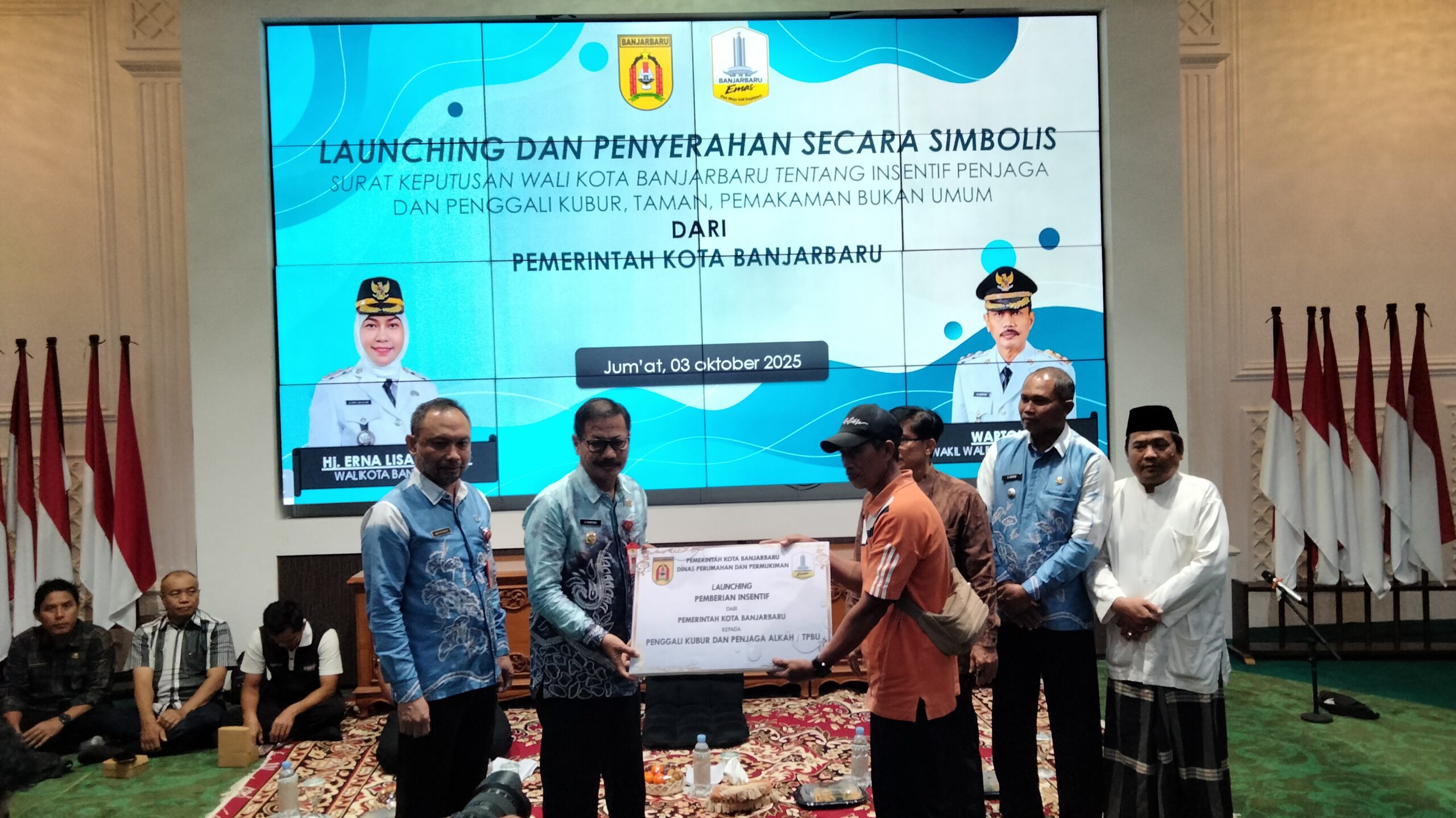 BANJARBARU,REPORTASE9.ID – Pemerintah Kota Banjarbaru serahkan SK Walikota Banjarbaru tentang Insentif penjaga dan penggali kubur, taman pemakaman bukan umum pada Jum’at (3/10/2025).
