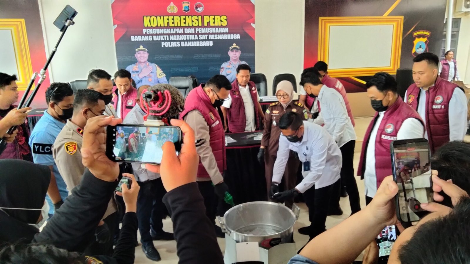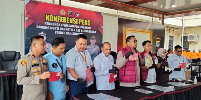 Usai konferensi pers, Polres Banjarbaru melakukan pemusnahan barang bukti narkotika di hadapan awak media sebagai bentuk transparansi dan pertanggungjawaban kepada publik.