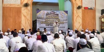 “Perasaannya senang,” ucapnya singkat saat diwawancarai setelah acara pelepasan CJH tahun 2026 di Masjid Nurul Iman, Sabtu (18/04/2026).