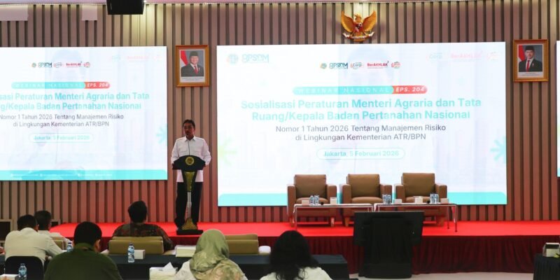 Peraturan tersebut menjadi fondasi tata kelola organisasi yang terintegrasi, sistematis, dan berkelanjutan. Untuk meningkatkan pemahaman jajaran terhadap kebijakan tersebut, Kementerian ATR/BPN menggelar Webinar Sosialisasi Permen ATR/Kepala BPN 1/2026 tentang Manajemen Risiko, secara daring dan luring di Aula Prona, Jakarta, Kamis (05/02/2026).