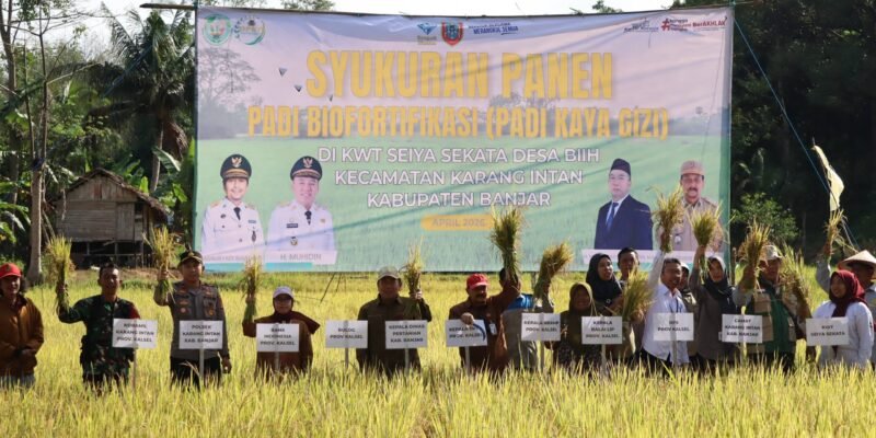 KALSEL, REPORTASE9.ID – Dinas Pertanian dan Ketahanan Pangan Provinsi Kalimantan Selatan (DPKP Kalsel) gelar syukuran panen padi biofortifikasi (padi kaya gizi) bersama Kelompok Wanita Tani (KWT) Seiya Sekata di Desa Biih, Kecamatan Karang Intan, Kabupaten Banjar pada Selasa (7/4/2026).