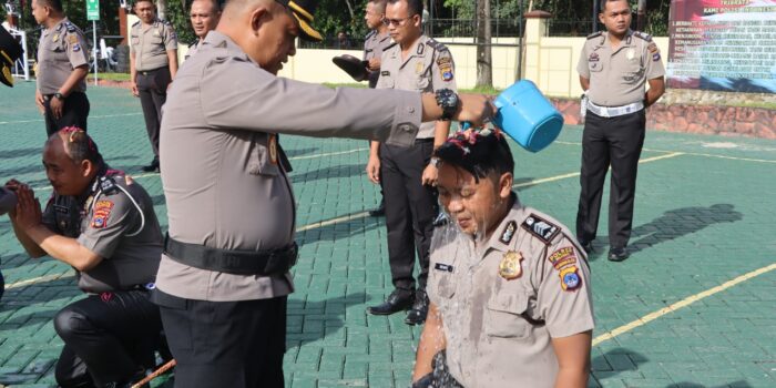 Setelah memberikan arahan dan sambutan, Kapolres Balangan dan Pejabat utama Polres Balangan menyalami personil yang naik pangkat dan dilanjutkan tradisi siraman kembang.