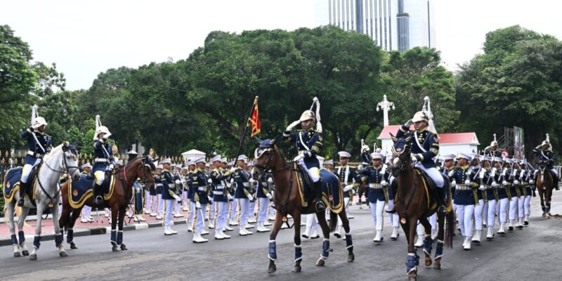 Barisan pasukan berkuda dengan formasi rapi dan gerakan terkoordinasi menjadi pemandangan yang memikat perhatian warga maupun peserta Car Free Day yang melintas di kawasan tersebut.