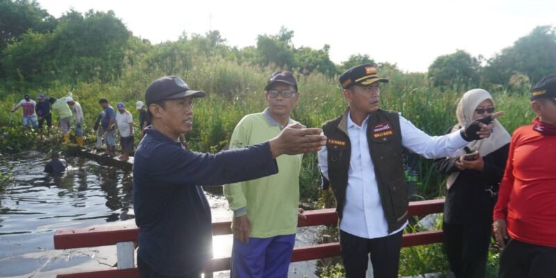 BANJARMASIN, REPORTASE9.ID – Wali Kota Banjarmasin M. Yamin HR, memantau langsung kegiatan gotong royong pembersihan Sungai Pangilun tembus Sungai Tembikar di RT 27 RW 3, Kelurahan Pemurus Dalam, Kecamatan Banjarmasin Selatan pada Rabu (14/1/2026).