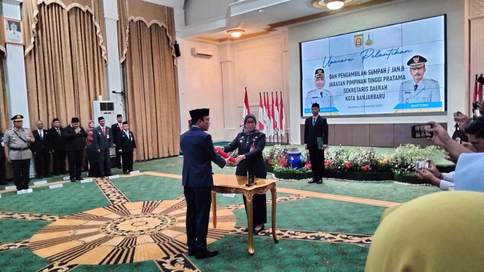 Walikota Banjarbaru Hj.Erna Lisa Halaby mengatakan dengan ini secara resmi saya melantik saudara Sirajoni dalam jabatan Sekretaris Daerah Kota Banjarbaru.
