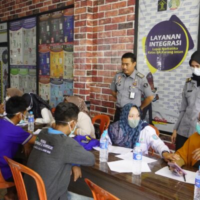 Satu persatu Warga Binaan tertib mengikuti pemeriksaan yang dilakukan Petugas Puskesmas Karang Intan 1, terdiri atas kader TB Desa Lihung Kecamatan Karang Intan. Kader melakukan skrining kepada responden yang terindikasi TB dan kontak erat dengan pasien-pasien TB di Lapas Narkotika Karang Intan.